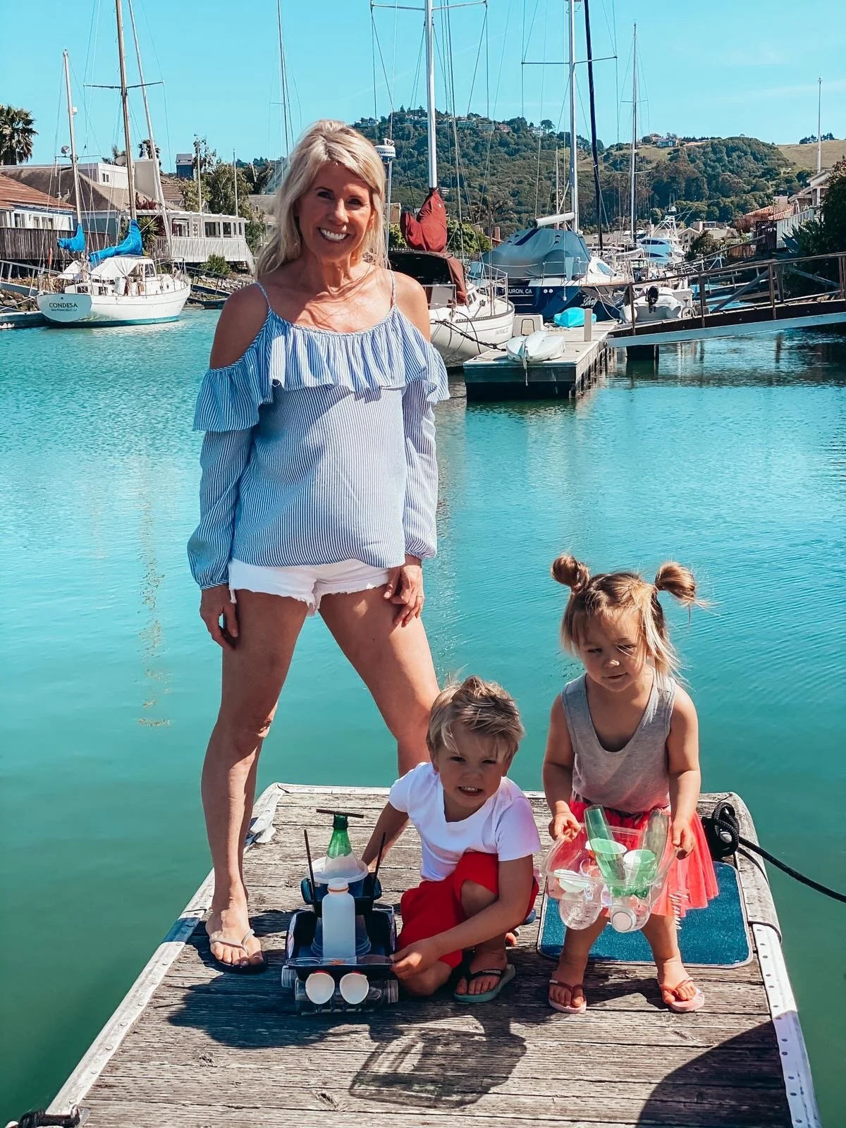 Watching the kids’ excitement after choosing the pieces of recycling, building their boats and finally being able to run down the dock to let them out into the water was so sweet! This craft is so easy to do, and is a great way to spend a sunny afternoon as you quarantine.